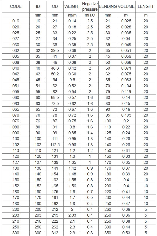 Structure: The pipe wall is wrapped with a hard plastic spiral, and the inner wall of the pipe is smooth
