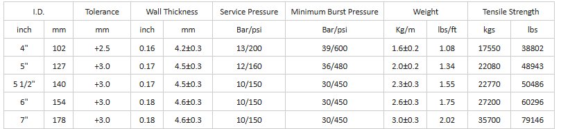 Cover and Lining: TPU, Ribbed cover or smooth coverReinforcement Jacket: High tenacity synthetic jacket.
